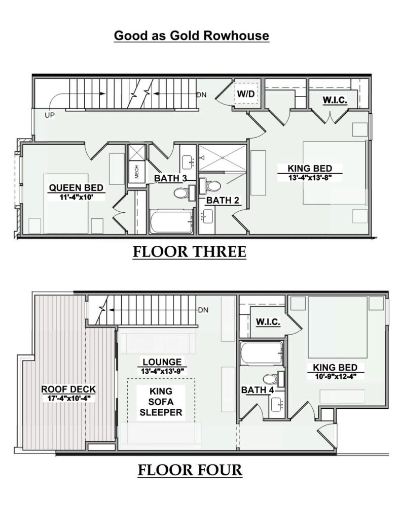 Good as Gold Rowhouse is a tall, narrow rowhouse that is four stories. The benefit for traveling groups is that they have separate rooms, bathrooms and most separate floors for privacy. But, yes, you should expect a lot of stairs.